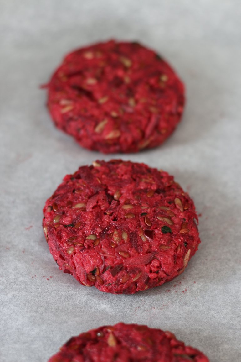 Burgery układać na blasze wyłożonej papierem do pieczenia. - Piec przez ok. 25-30 minut w temp. 200°C (góra-dół). W połowie pieczenia przewrócić burgery na drugą stronę.